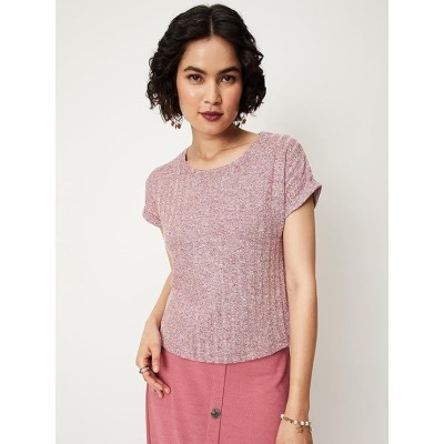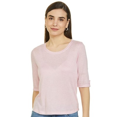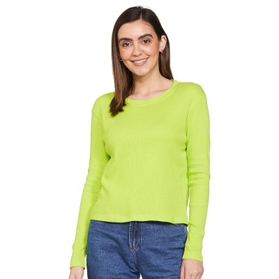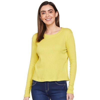 Women's Cotton Regular Fit Ribbed Round Neck T-Shirt
