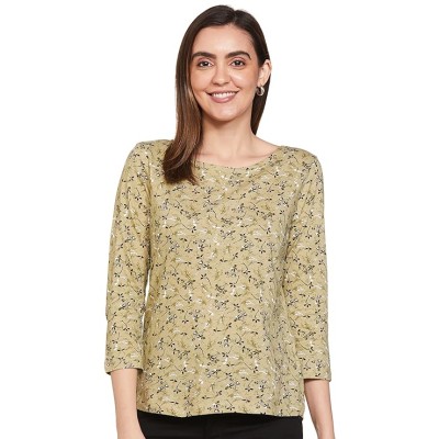 Women Cotton Floral Printed Boat Neck Regular Fit T-Shirt