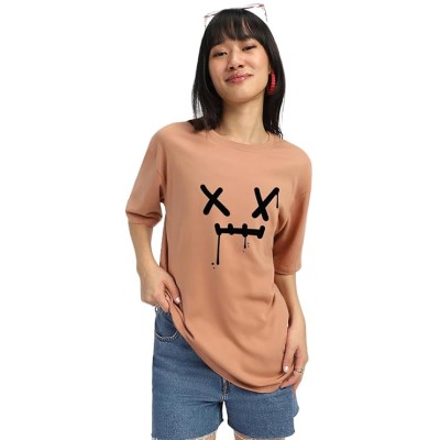 Women's 100% Cotton Graphic Print Oversized Fit Round Neck T-Shirt