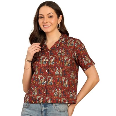 Women's Printed Straight Mandarin Neck Shirt for Women's