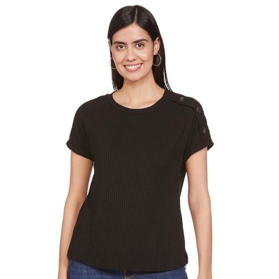 Women's Cotton Regular Fit Solid Short Sleeves Round Neck Knit T-Shirt
