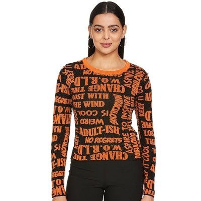 Women's Polyester Printed Extended Collar Regular Fit Top
