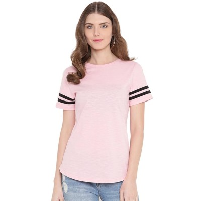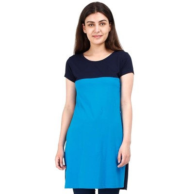 Women's Cotton Round Neck Color Block Half Sleeve Long Top