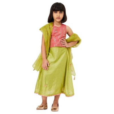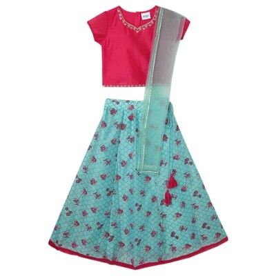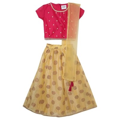 Polyester Girls Embellished Readymade Lehenga Set With Dupatta