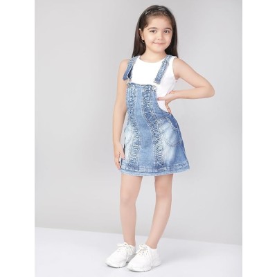 Girl's Pinafore Above The Knee Solid Denim Dress with T-Shirt
