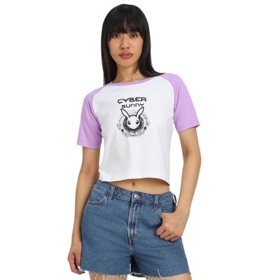 Pure Cotton Regular Fit Round Neck Cool Cyber Bunny Front Graphic Printed Crop Top for Women & Girls