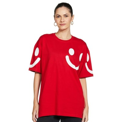 Pure Cotton Oversized Drop Shoulder Brand Logo Typography Print Round-Neck Baggy Fit T-Shirt for Women