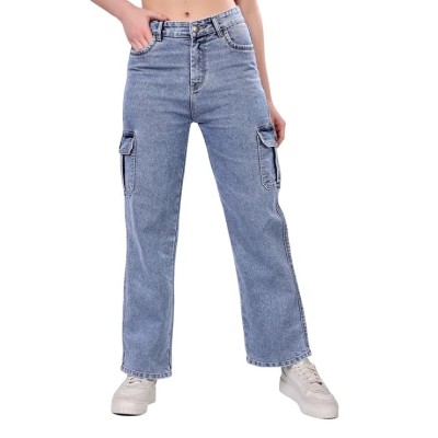 Women's Denim Relaxed Fit Color Cargo Jeans