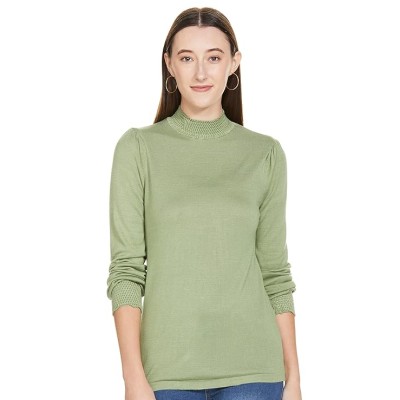 Women Solid Full Sleeves High Neck Crop Regular Fit Top