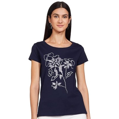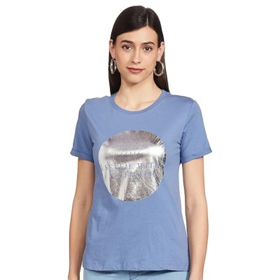 Women's Cotton Printed Round Neck Regular Fit T-Shirt