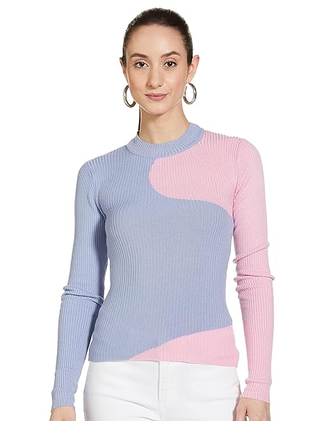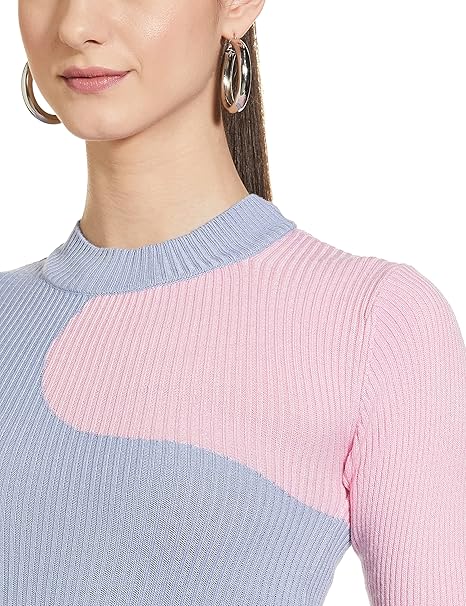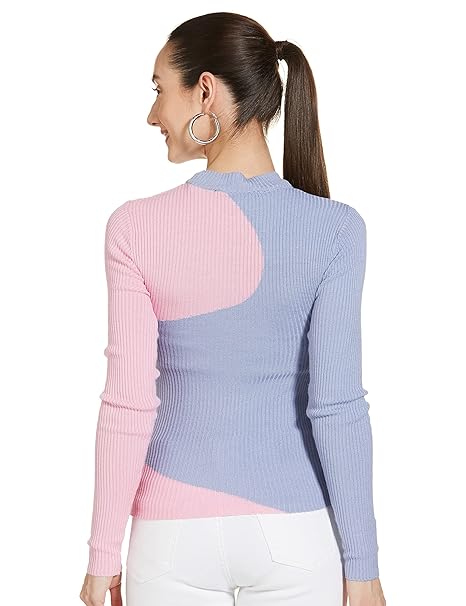 Women Polyester Regular Fit Colorblocked Knit Top