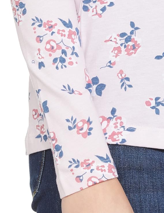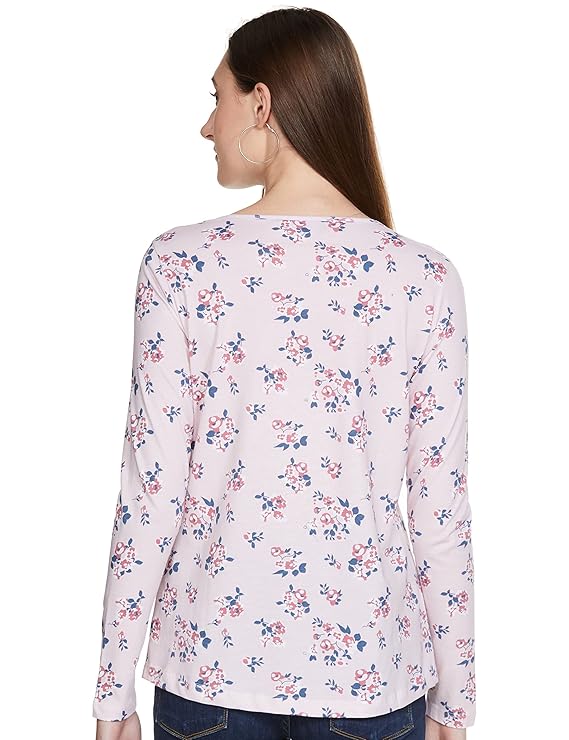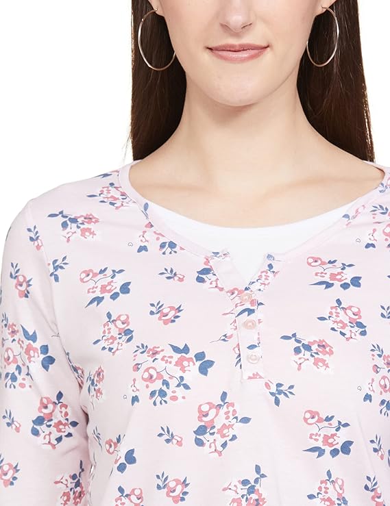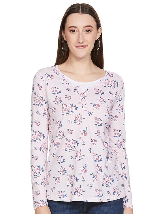 Women's Cotton Regular Fit Floral Printed Layered Neck Top