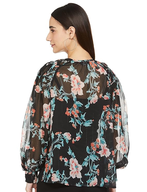Women Polyester Printed Bishop Sleeve Regular Fit Top