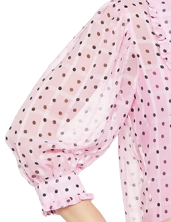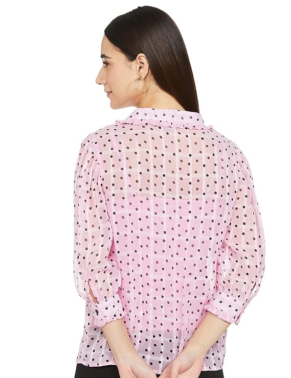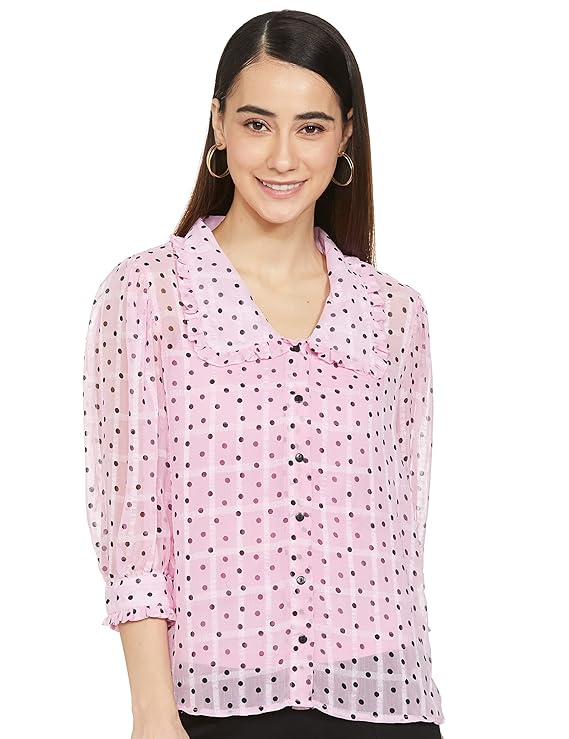 Women's Polyester Printed Extended Collar Regular Fit Top