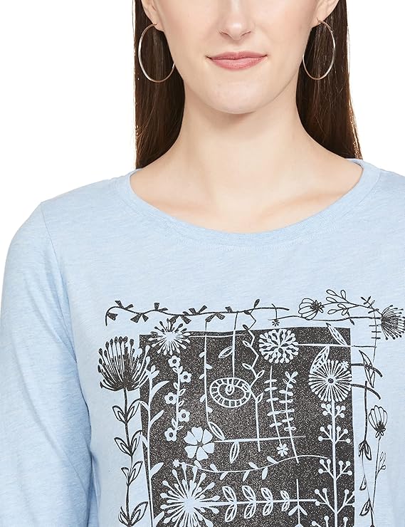 Women Cotton Floral Printed Long Sleeve Regular Fit T-Shirt