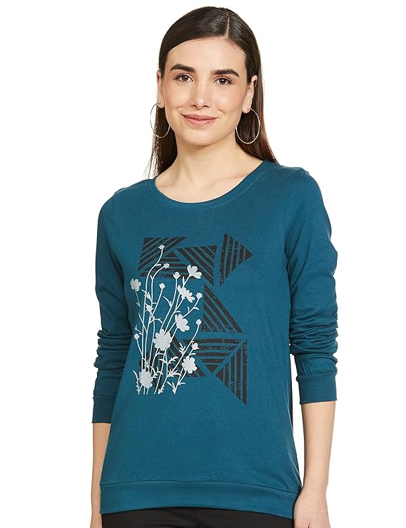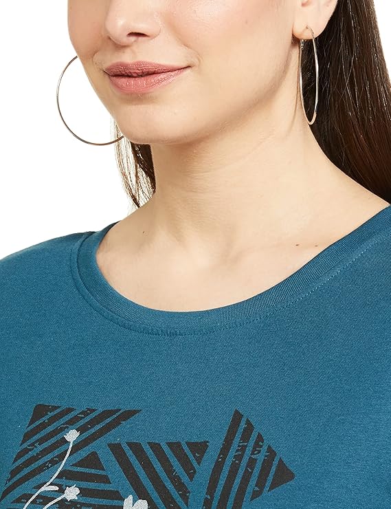 Women Cotton Floral Printed Regular Fit T-Shirt with Round Neck