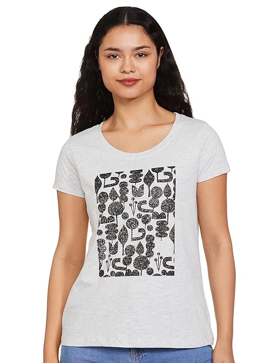 Women's Cotton Graphic Print Round Neck Regular Fit T-Shirt