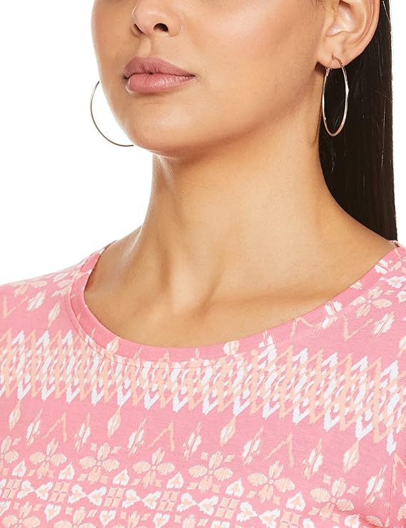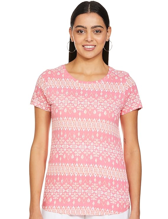 Women Cotton Regular Fit Printed Round Neck T-Shirt