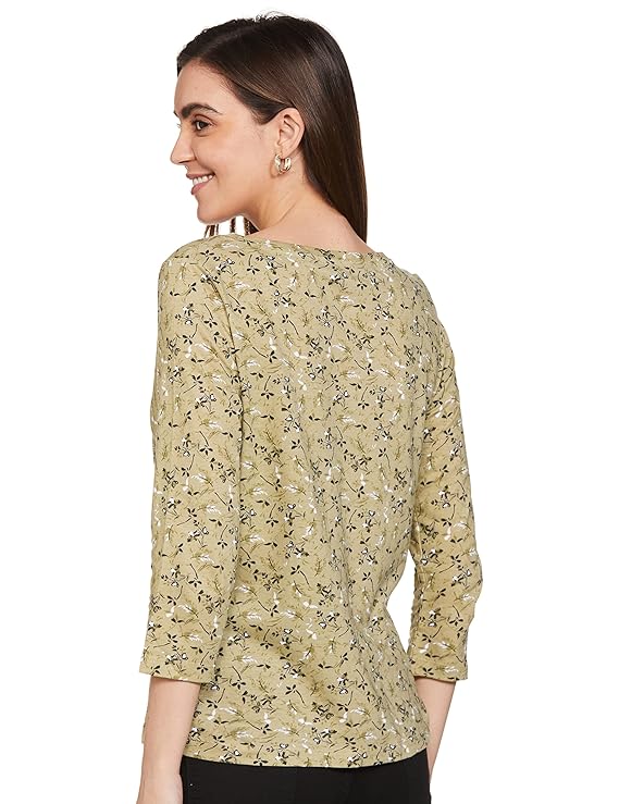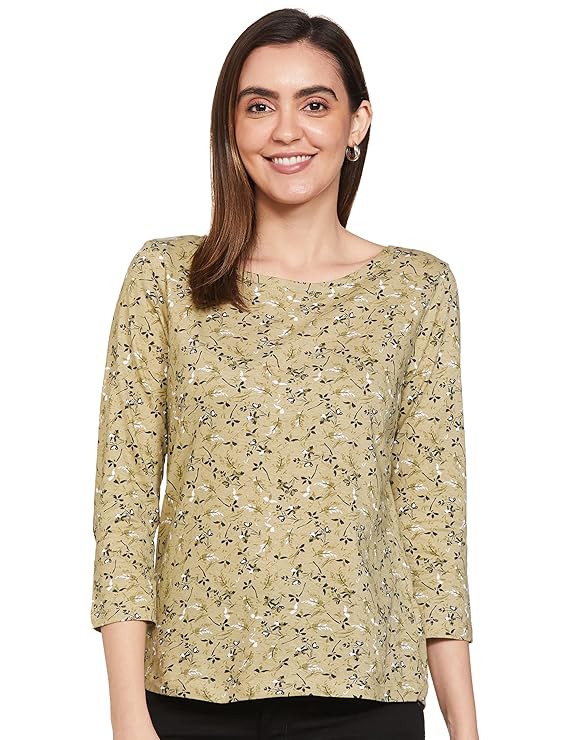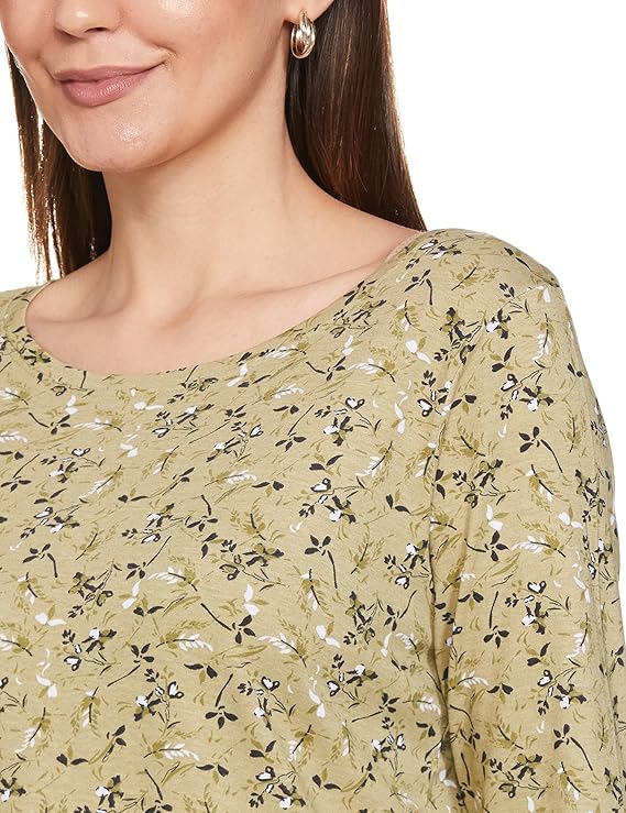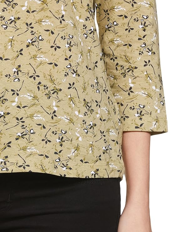 Women Cotton Floral Printed Boat Neck Regular Fit T-Shirt
