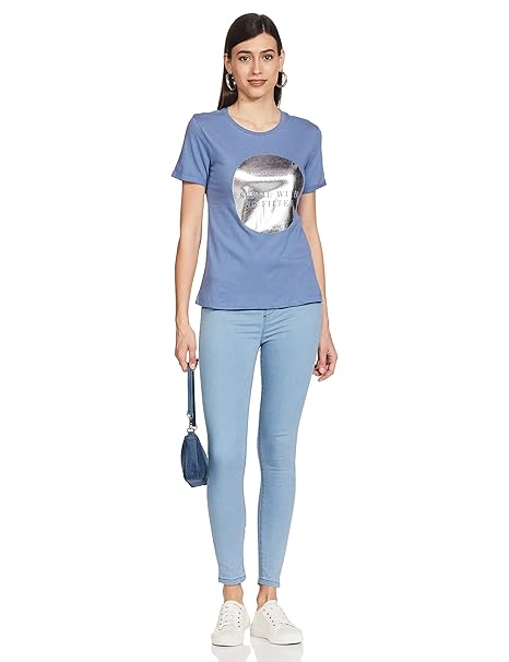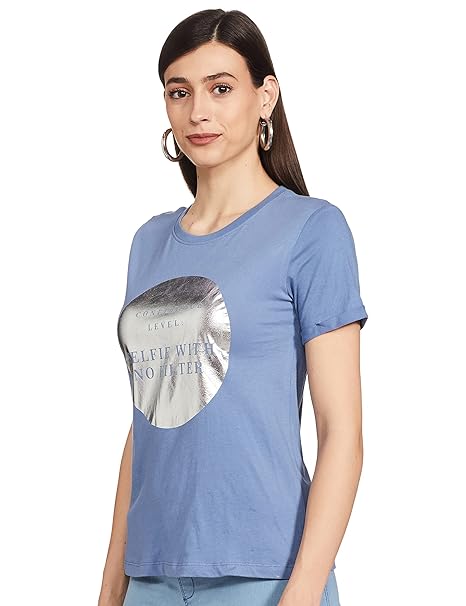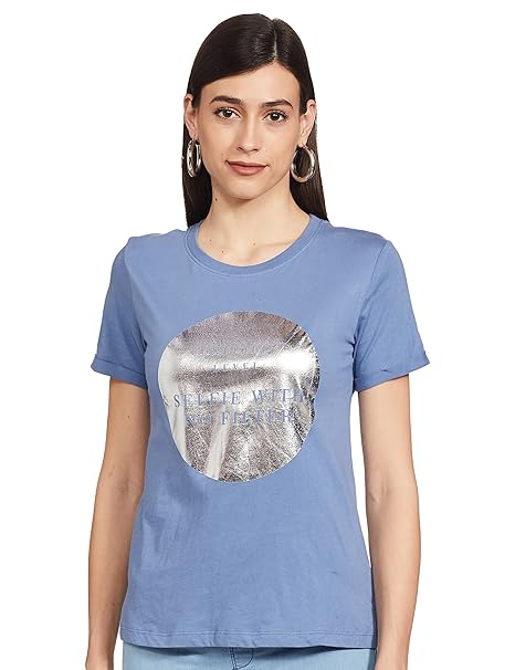 Women's Cotton Printed Round Neck Regular Fit T-Shirt