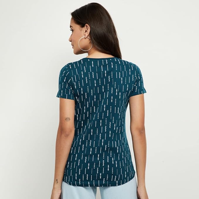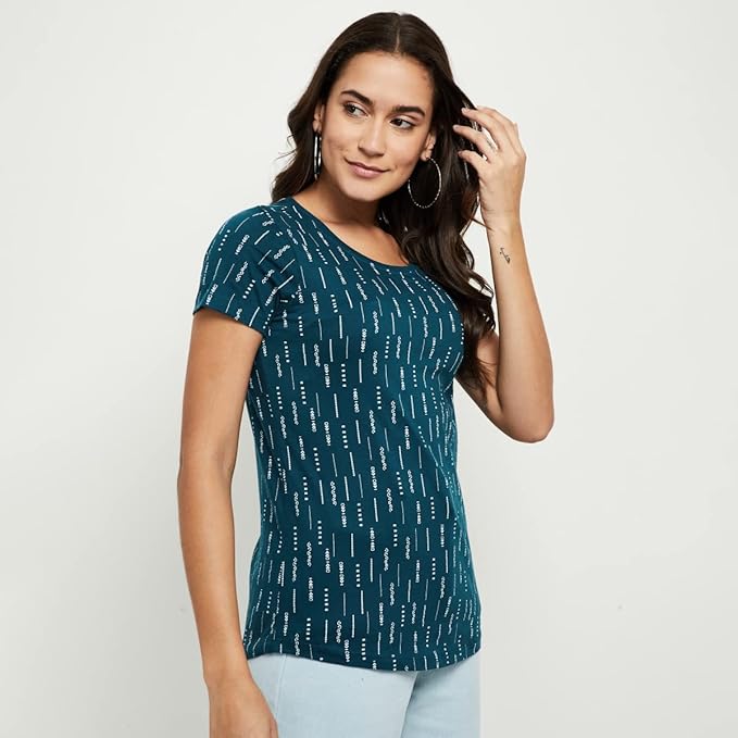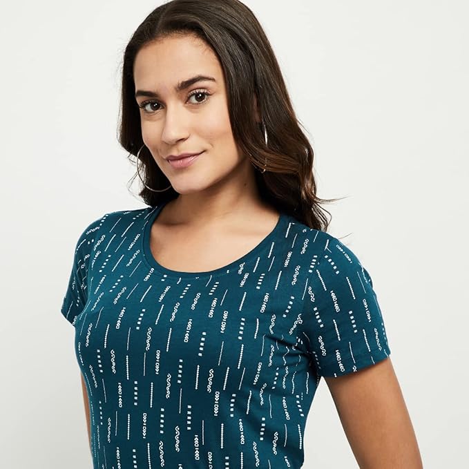 Women's Cotton Regular Fit Printed Round Neck T-Shirt