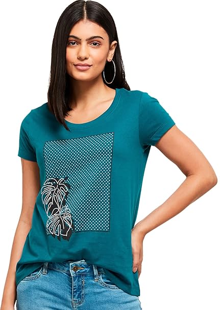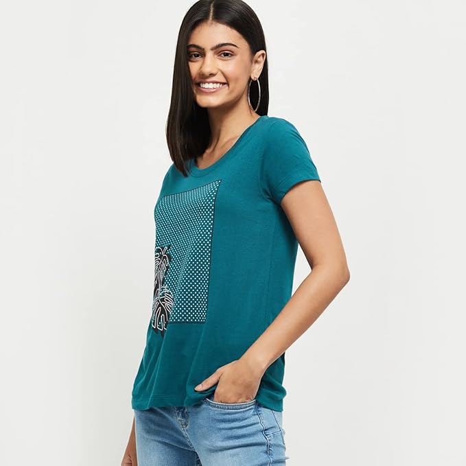 Women's Cotton Regular Fit Printed Round Neck T-Shirt