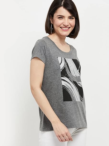 Women's Cotton Regular Fit Printed Round Neck T-Shirt