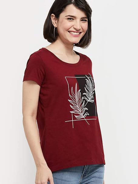 Women's Cotton Regular Fit Printed Round Neck T-Shirt