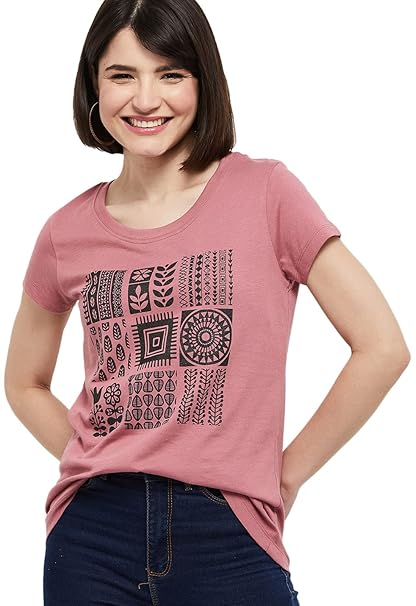 Women's Cotton Regular Fit Printed Round Neck T-Shirt