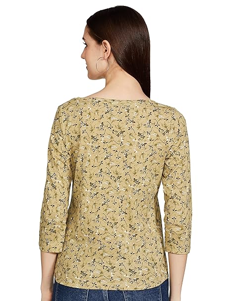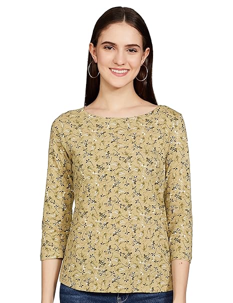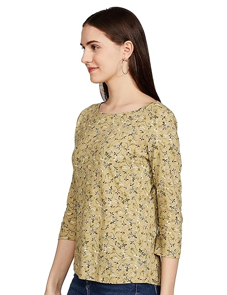 Women's Cotton Regular Fit Printed Three-Quarter Sleeve Top